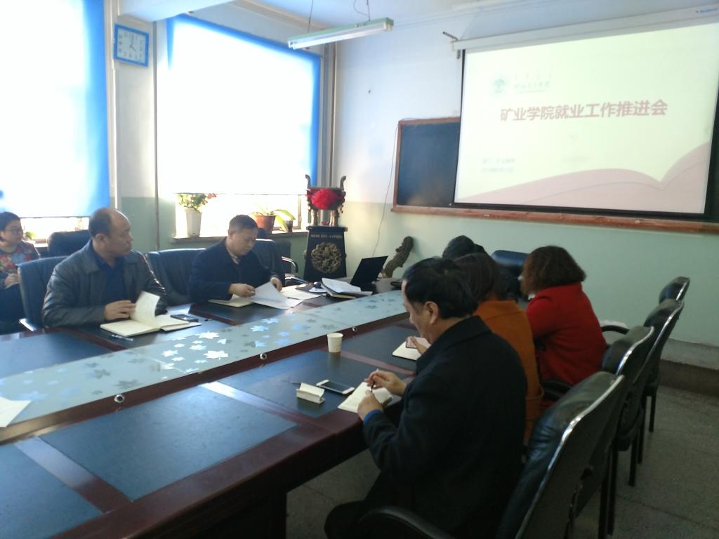 3月20日下午4点,在知行楼212资料室,矿业公司召开了2019届毕业生就业工作推进会。参加本次会议的有党总支副书记、党总支副书记王旭、各个教研室主任、学工办全体、2016级、2015级各班班主任。张福友书记主持会议。