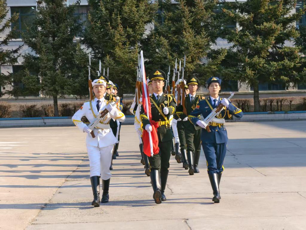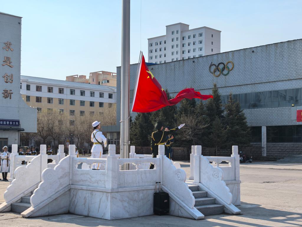 仪式现场,首先由校国旗护卫队出旗,气氛庄重而肃穆。伴随着激昂的国歌声,鲜艳的五星红旗冉冉升起,全体人员庄严肃立,向国旗行注目礼,表达对祖国的崇高敬意和深深热爱。